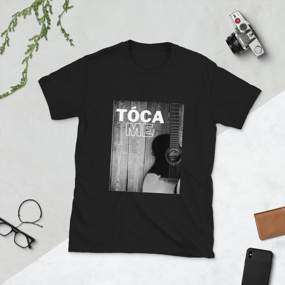 Camiseta Con Guitarra En Blanco y Negro Con Frase