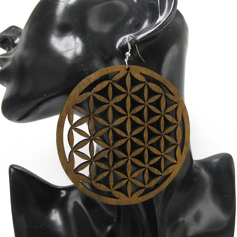 Aretes venidos de África. Con un diseño artesanal étnico completamente, inspirado en la geometría sagrada, tendencia espiritual científica difundida desde los tiempos de los egipcios en varias partes de la tierra, especialmente en África y la antigua Sumeria.
