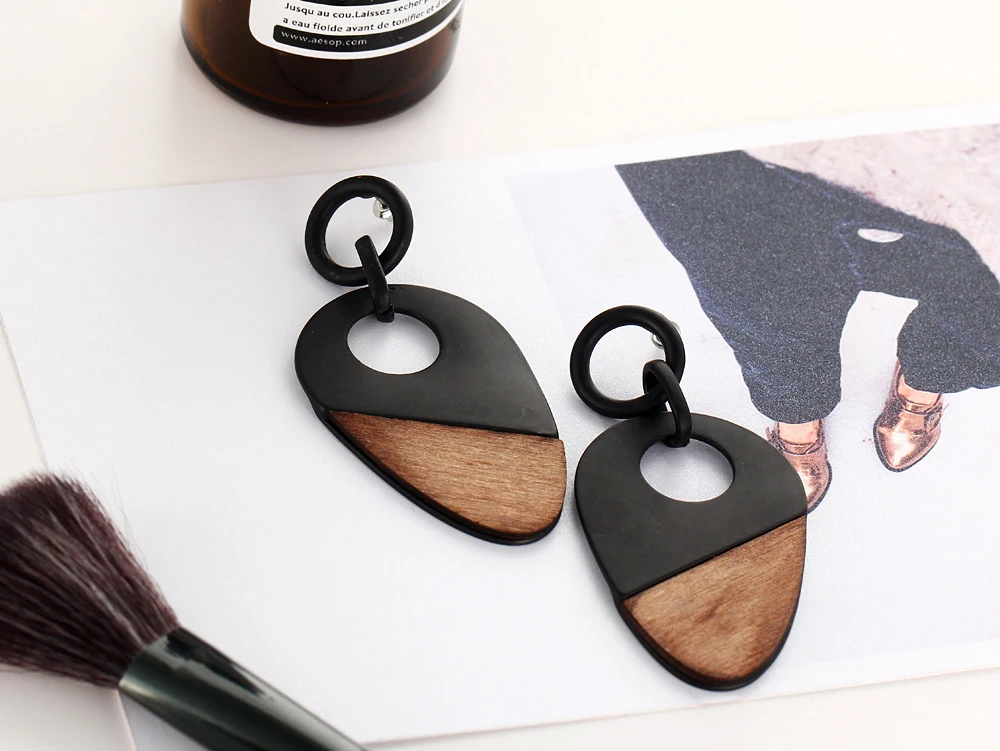 Aretes artesanales de madera de gran elegancia y estilo. De estilo muy sencillo para ser usados con prendas de ocasiones formales y semi formales. De forma semi ovalada, estos aretes puedes usarlos para ir al trabajo, en fiestas, celebraciones, y hasta en eventos formales ya que el diseño es de gran elegancia y sencillez.