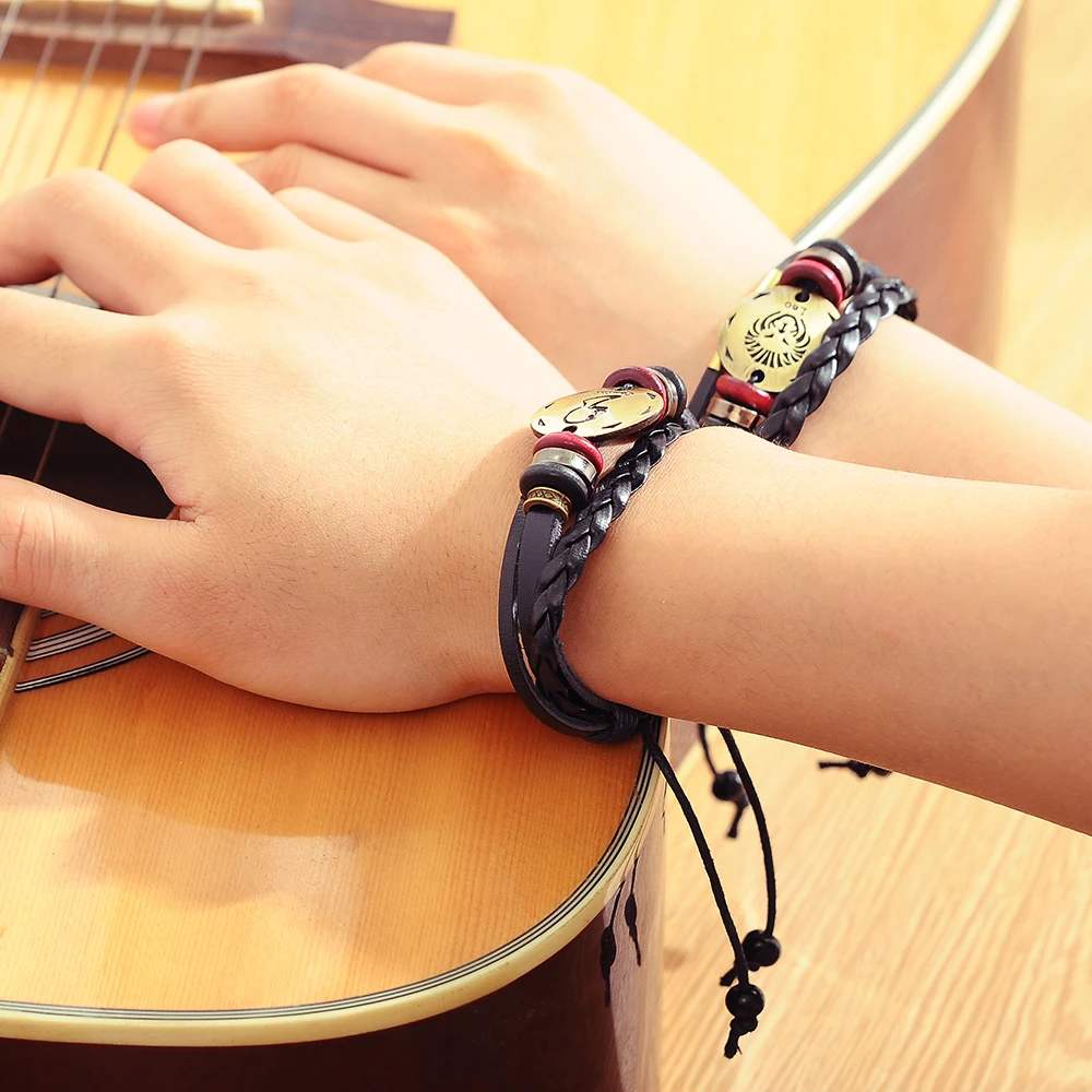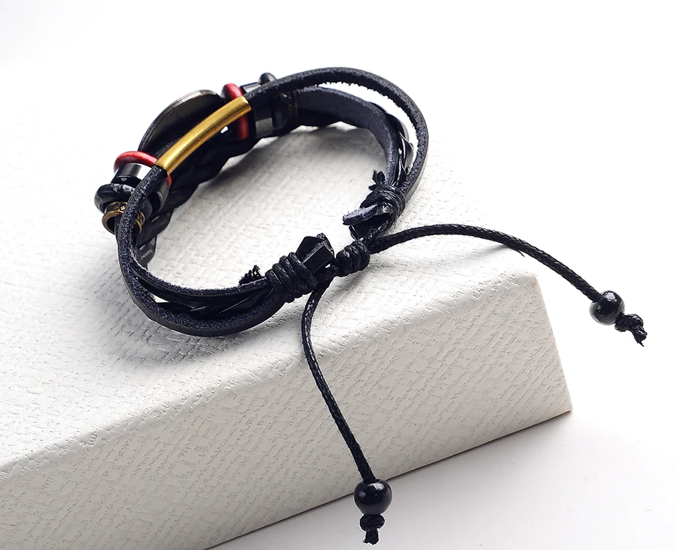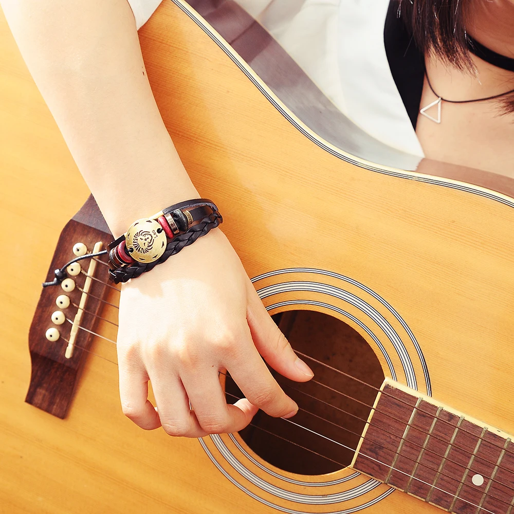 Brazalete de cuero cuero original unisex para hombre y mujer, con un modelo diferente para cada signo del zoodíaco, multi capa, con cadena tejida en lazo, cierre metálico, chapa redonda metálica grabada con los doce signos zoodiacales: Aries, sagitario, acuario, leo, tauro, virgo, escorpión, piscis, géminis, cáncer, libra, capricornio. Ajustables para diferentes grosores de muñeca. Diferentes colores de cuenta y lazos entretejidos.