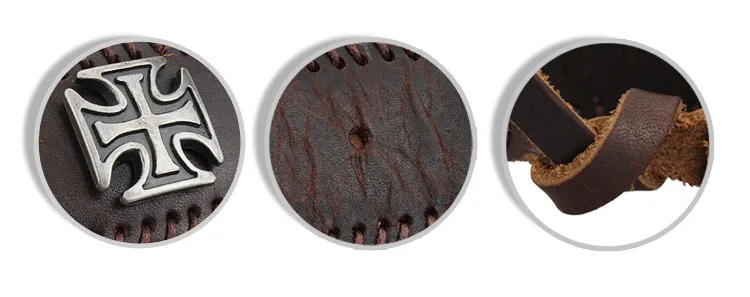 Características de la pulsera: Elaborada con cuero genuino y aleación metálica de zinc que cumple con las normas medio ambientales y protección europeas (libre de níquel, plomo, cadmio). Las dimensiones de la pulsera son: 32.5 por 4 centímetros, y tiene un peso de 34 gramos. Viene en dos colores básicos, negro y café oscuro.