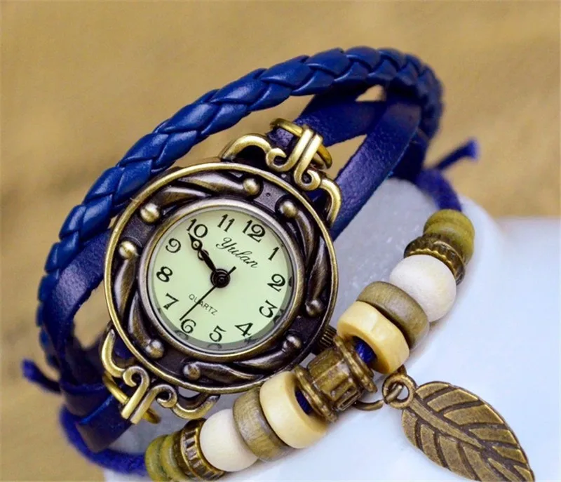 Original diseño para damas y chicas. Brazalete de cuero con reloj tipo bohemio, de estilo vintage. De varias tonalidades. Para combinarlo con atuendos casuales y para ir a trabajar.