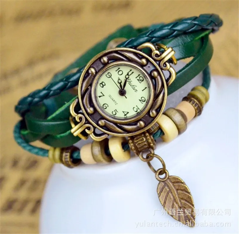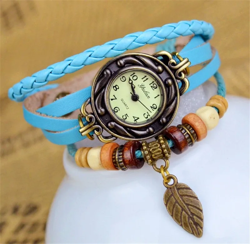 Brazalete Bohemio Con Reloj De Cuero Para Mujer