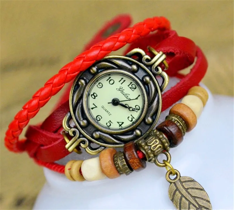 Original diseño para damas y chicas. Brazalete de cuero con reloj tipo bohemio, de estilo vintage. De varias tonalidades. Para combinarlo con atuendos casuales y para ir a trabajar.