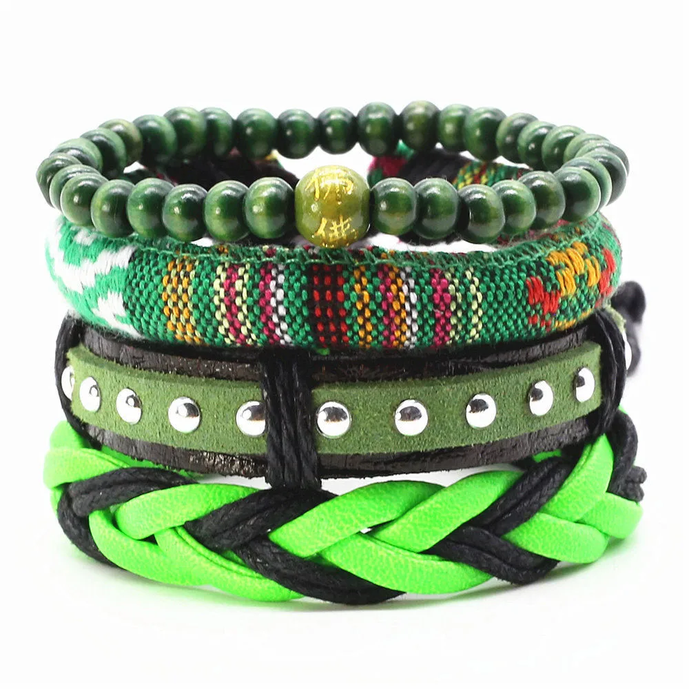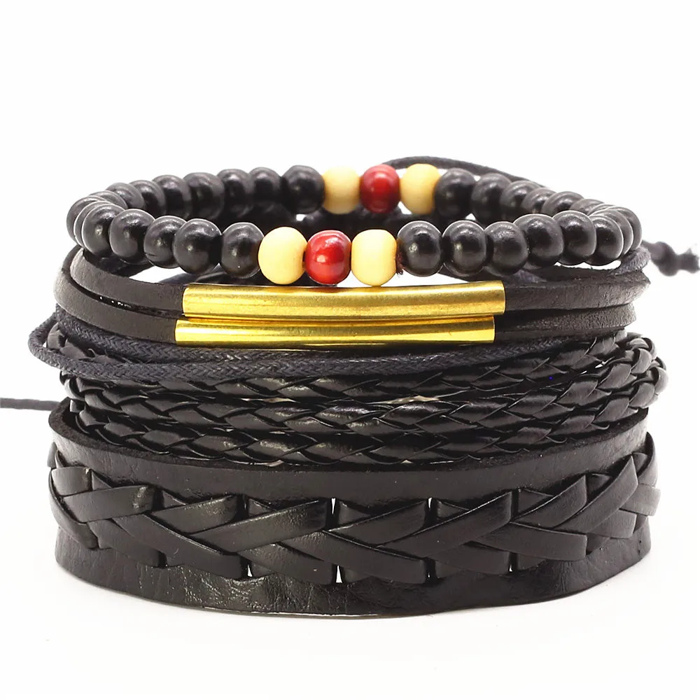 Nuevos diseños artesanales multicapa de brazaletes hippie, cuatro capas por artículo, hechos de cuero y cuentas. Viene en varios colores y combinaciones. Son varios los estilos que puedes escoger. Puedes quitar la capa de cuentas y transforma el brazalete en un accesorio más masculino, ideal para el hombre casual y bohemio. Son también varios tipos de tejido de cuero.